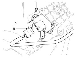 3. After removing the mounting screws (4EA) and switch connector (A), then remove the IMS control switch (B) from the front door trim panel.