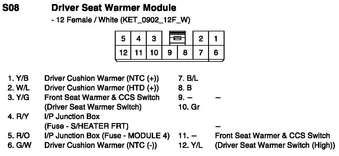 S08 Driver Seat Warmer Module: