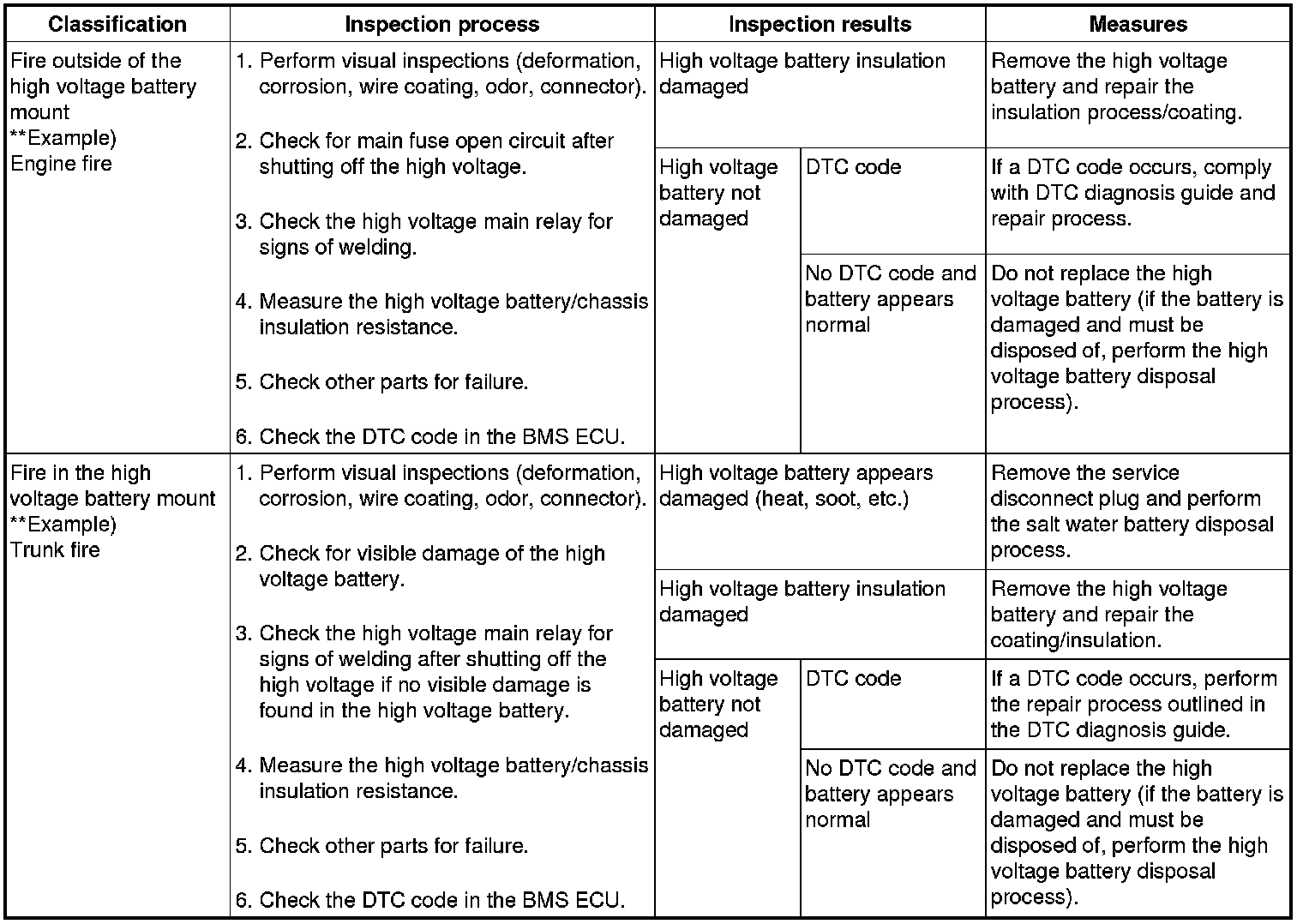 High voltage battery system inspection guide