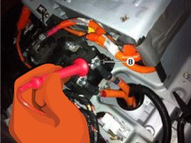 To avoid serious injury or death from high voltage electrical shocks, shut off the high voltage circuit before doing any work related with the high voltage system (Battery Pack Assembly, Power Relay Assembly, HPCU, BMS ECU, Hybrid Drive Motor, Inverter, HSG, LDC Power Cable, Electric Compressor, and so on).