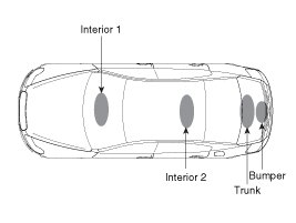 4. Set the smart key in the following shade area and actuate the antenna. Check the LED of smart key is blinking.