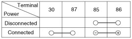 2. There should be no continuity between the No.30, 87a and No.87 terminals when power is disconnected.