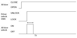 1. ALL DOOR UNLOCK signal is output one-time during T1 if ALL DOOR(Driver Door switch & Assist door switch & Rear left door switch & Rear right door switch) is CLOSED and Driver Unlock State is Lock->Unlock.