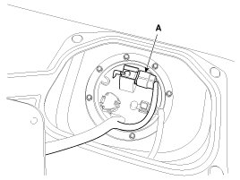 3. Disconnect the fuel tank pressure sensor connector (A), and then remove the fuel tank pressure sensor.