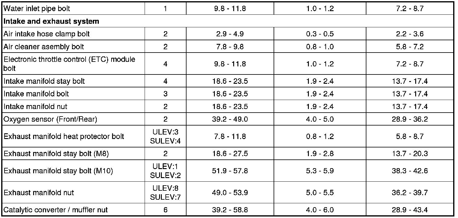 Tightening Torques