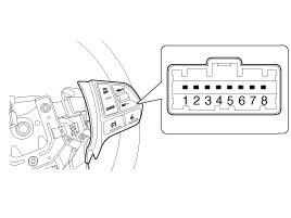 2. Measure voltage between terminals on the harness side connector when each function switch is ON (switch is depressed).