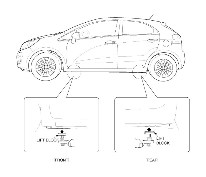 2. Raise the hoist a few inches (centimeters) and rock the vehicle to be sure it is firmly supported.