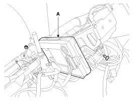 3. Disconnect the connectors and remove the BCM (A) after loosening the nut and the bolt.