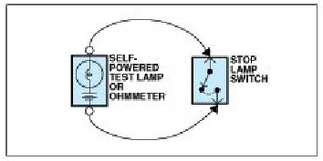 B. Connect one lead of a self-powered test lamp or ohmmeter to one end of the part of the circuit you wish to lest. If you are using an ohmmeter, hold the leads together and adjust the ohmmeter to read zero ohms.