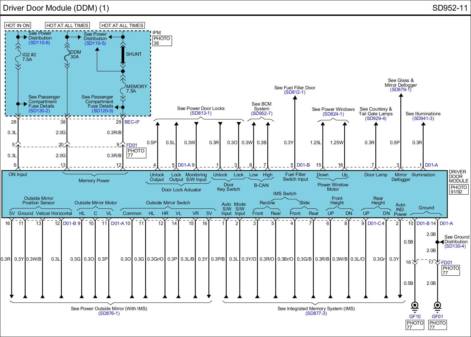 Driver Door Module (DDM) (2) Connector Pin Outs: