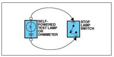 Use a self-powered test lamp or an ohmmeter to check for continuity.