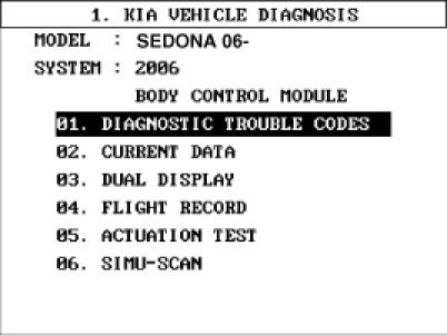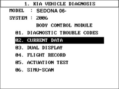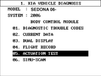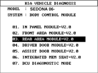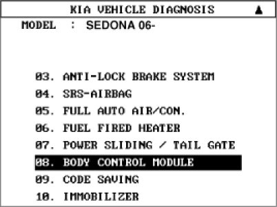 2. To diagnose the BCM function, select the menu of model and body control module.