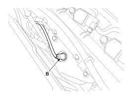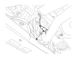 2. Disconnect the connector (A), and then remove the sensor (B).
