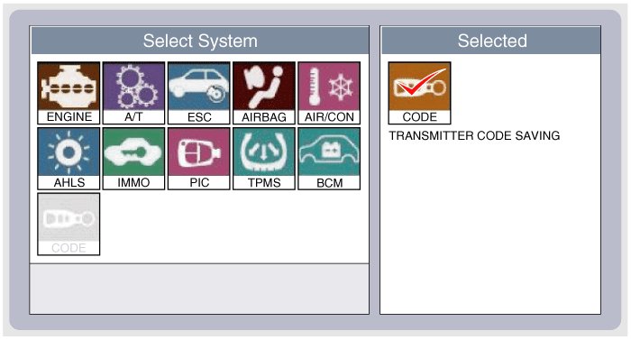 2. Select the vehicle model and then do "CODE SAVING"