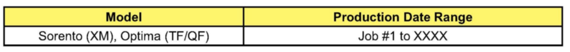 MODEL: 2011/12MY Sorento (XM), Optima (TF/QF)