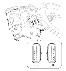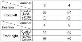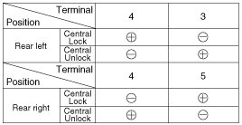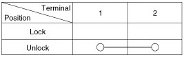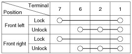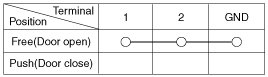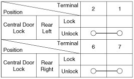 4. Check for continuity between the terminals in each switch position when inserting the key into the door according to the table.