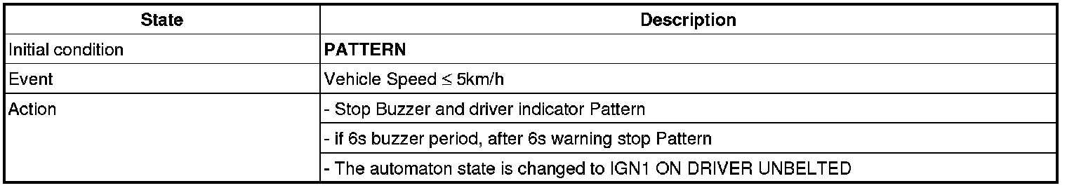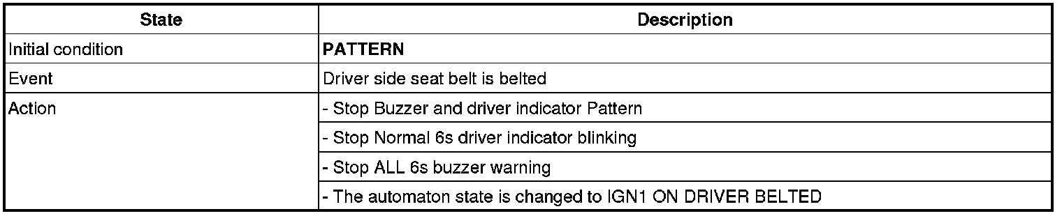 4 Normal 6s buzzer: If IGN1=1 with Belted->Unbelted, buzzer is warning.