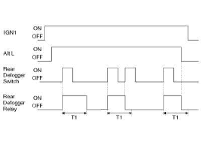(1) With the Engine Running (charging voltage at Alt 'L' terminal, 12v at IGN1) and the Rear Defogger turned on, the Rear Defogger relay will stay ON for 20min.