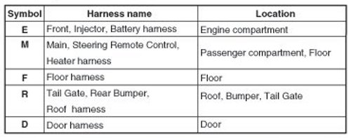 *Depending on the vehicle, it is necessary to check the harness name symbol on the harness layouts for detailed symbol.
