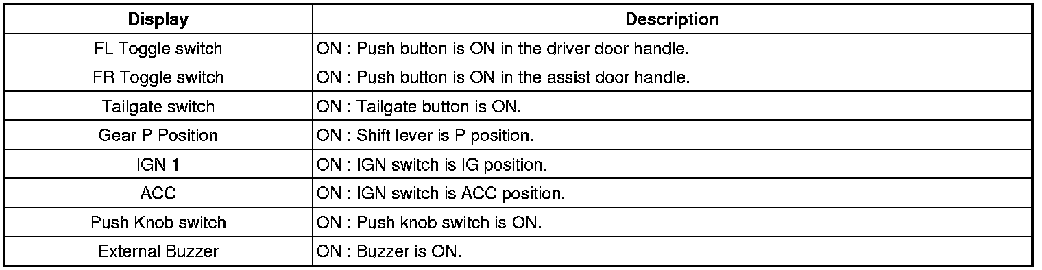 1. SMART KEY unit Input problem : switch diagnosis