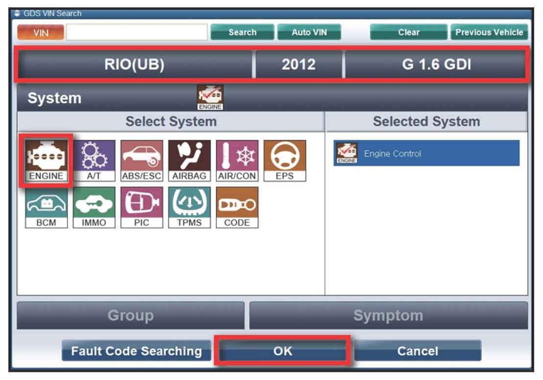 6. Select ENGINE system and click OK.