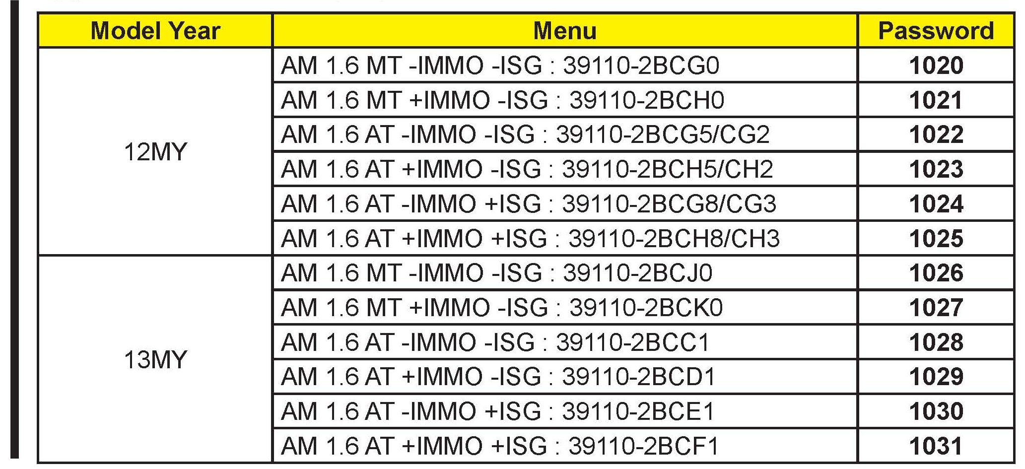 *MANUAL MODE ECM UPGRADE PASSWORDS*: