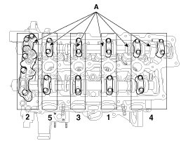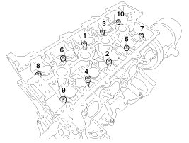 Tighten the 10 cylinder head bolts, in several passes, in the sequence shown.