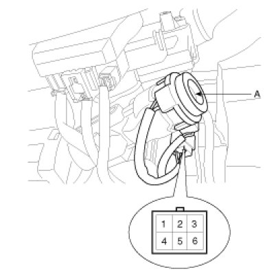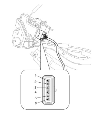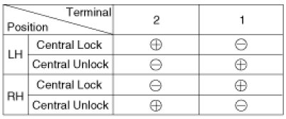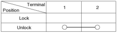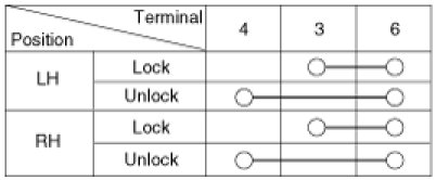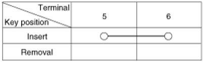 4. Check for continuity between the terminals in each switch position when inserting the key into the door according to the table.