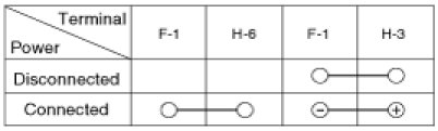 2. There should be no continuity between the No.1 terminals in the I/P-F and No.6 terminals in the I/P-H when power is disconnected.