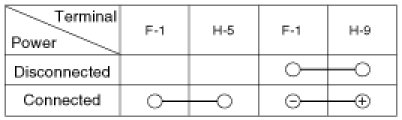 2. There should be no continuity between the No.1 terminals in the I/P-F and No.5 terminals in the I/P-H when power is disconnected.