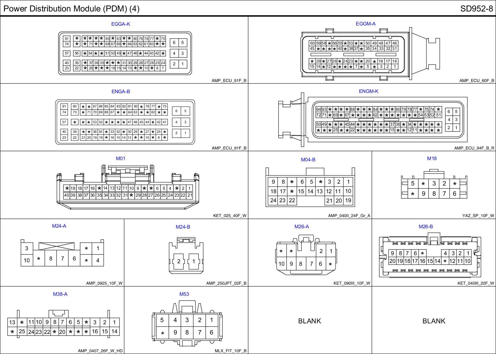 Power Distribution Module (PDM) (4) Connector Pin Outs: