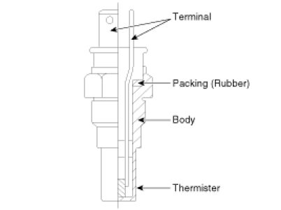 Engine Coolant Temperature Sensor (ECTS) is located in the engine coolant passage of the cylinder head for detecting the engine coolant temperature. The ECTS uses a thermistor whose resistance changes with the temperature.