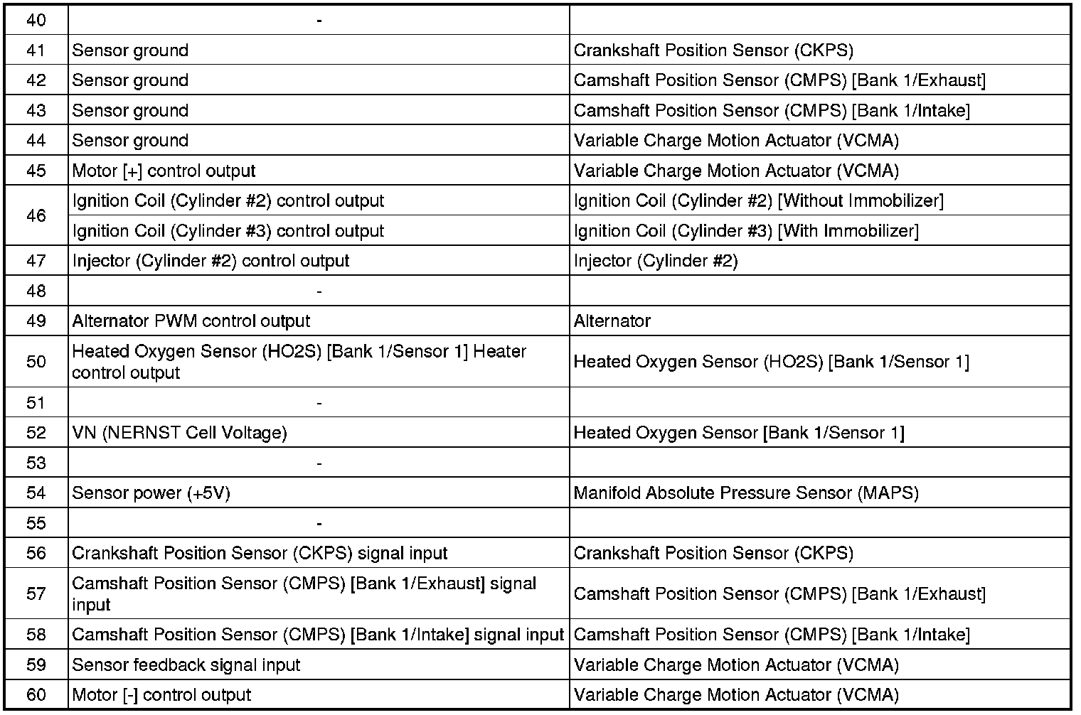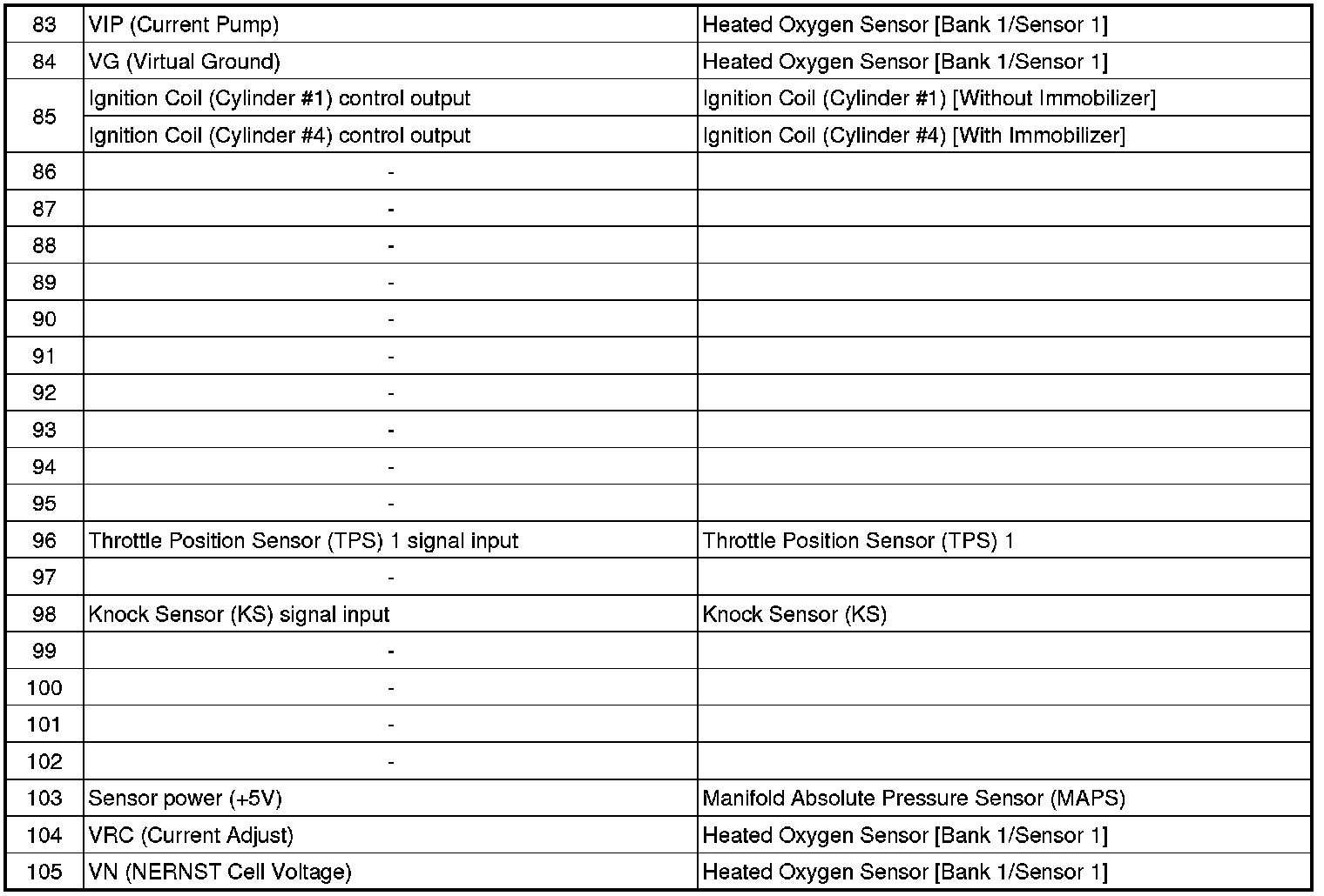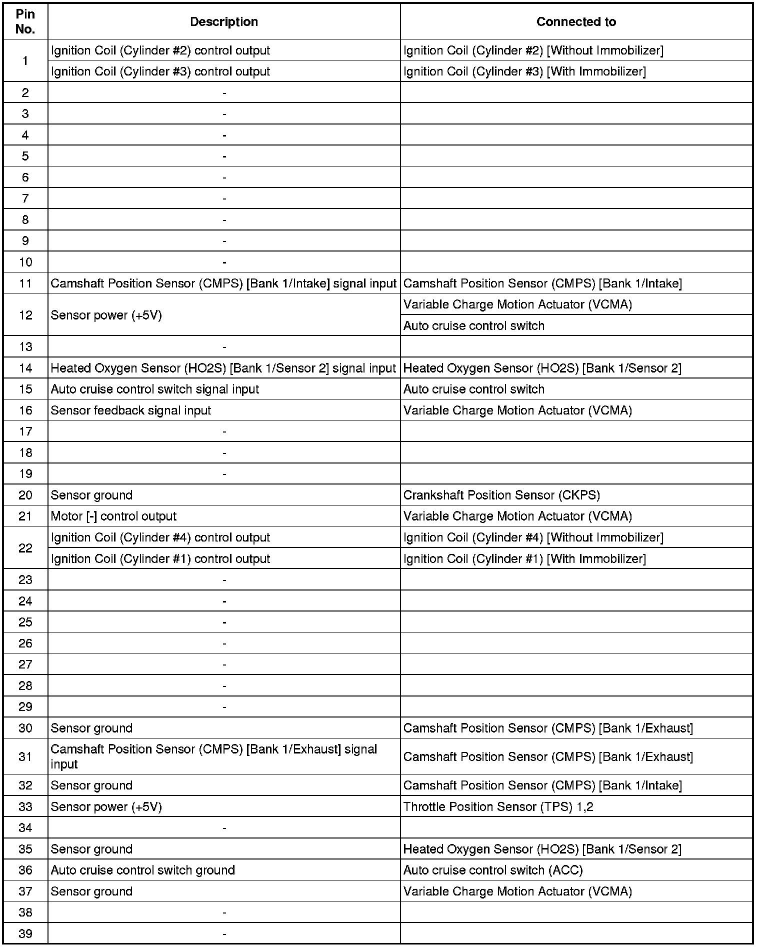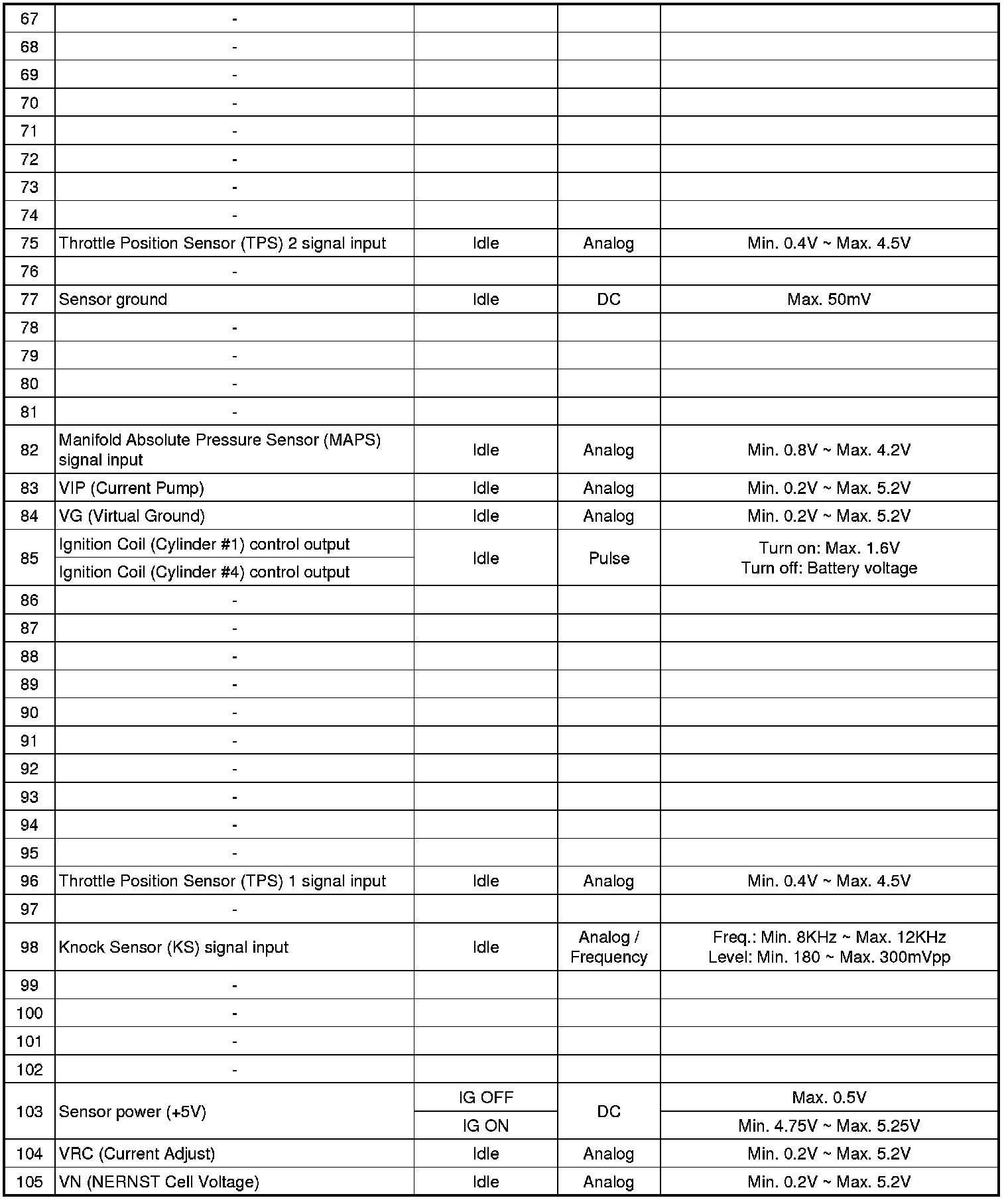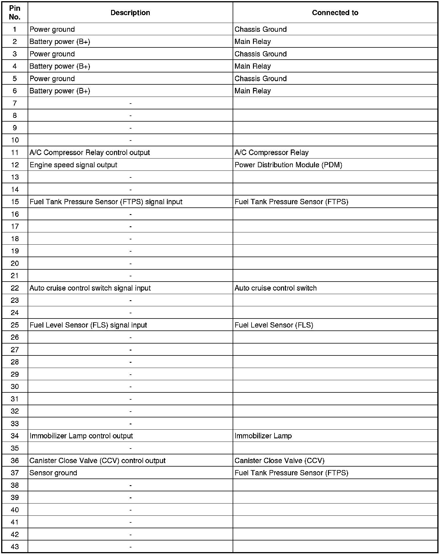 ECM Terminal And Input/Output signal (M/T)