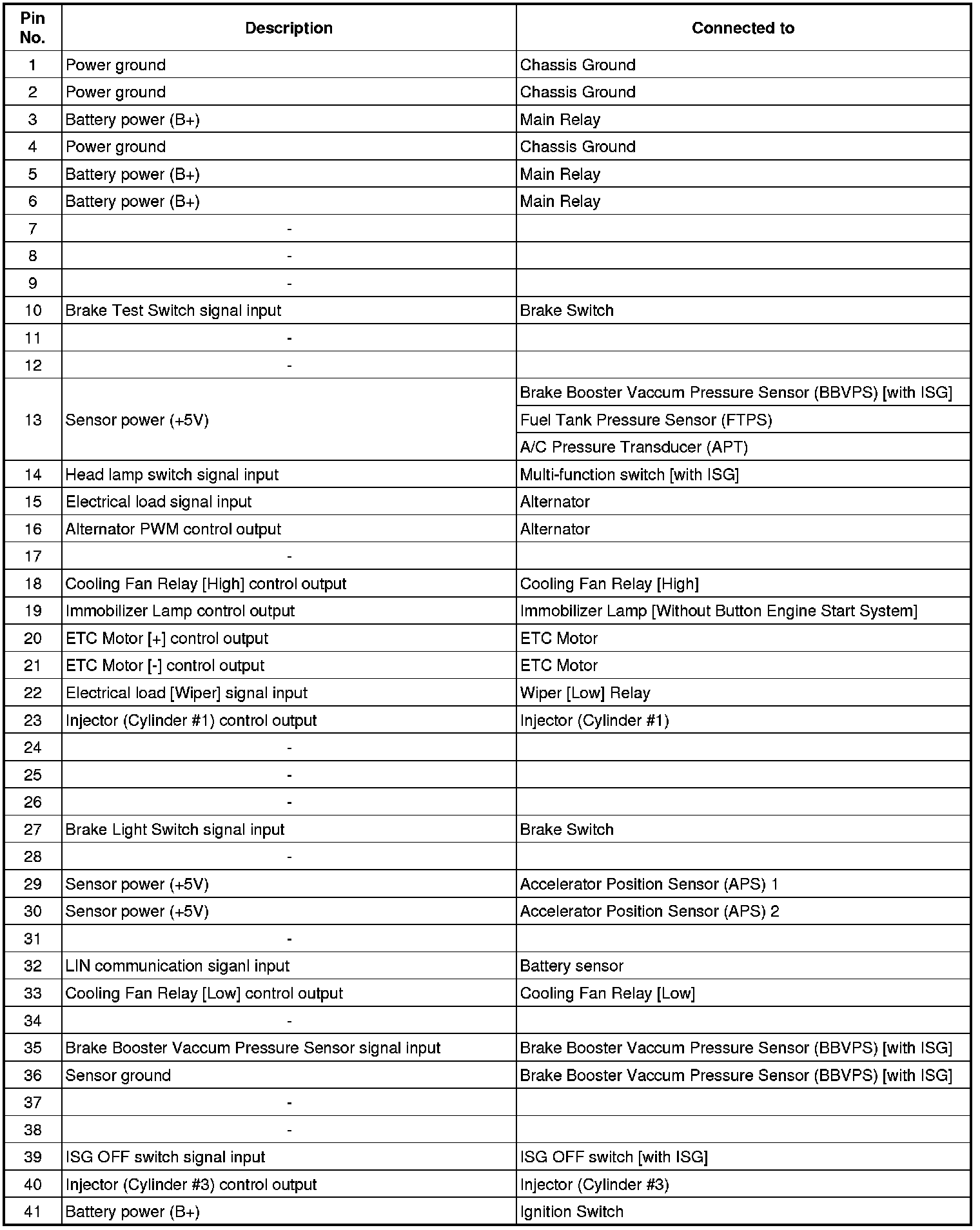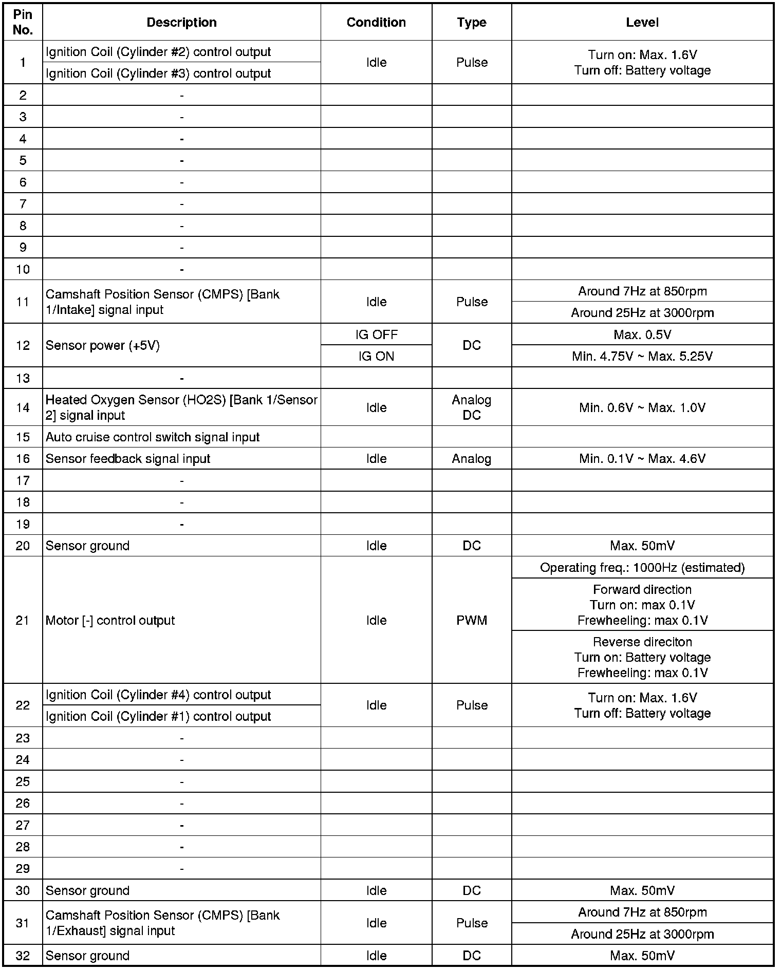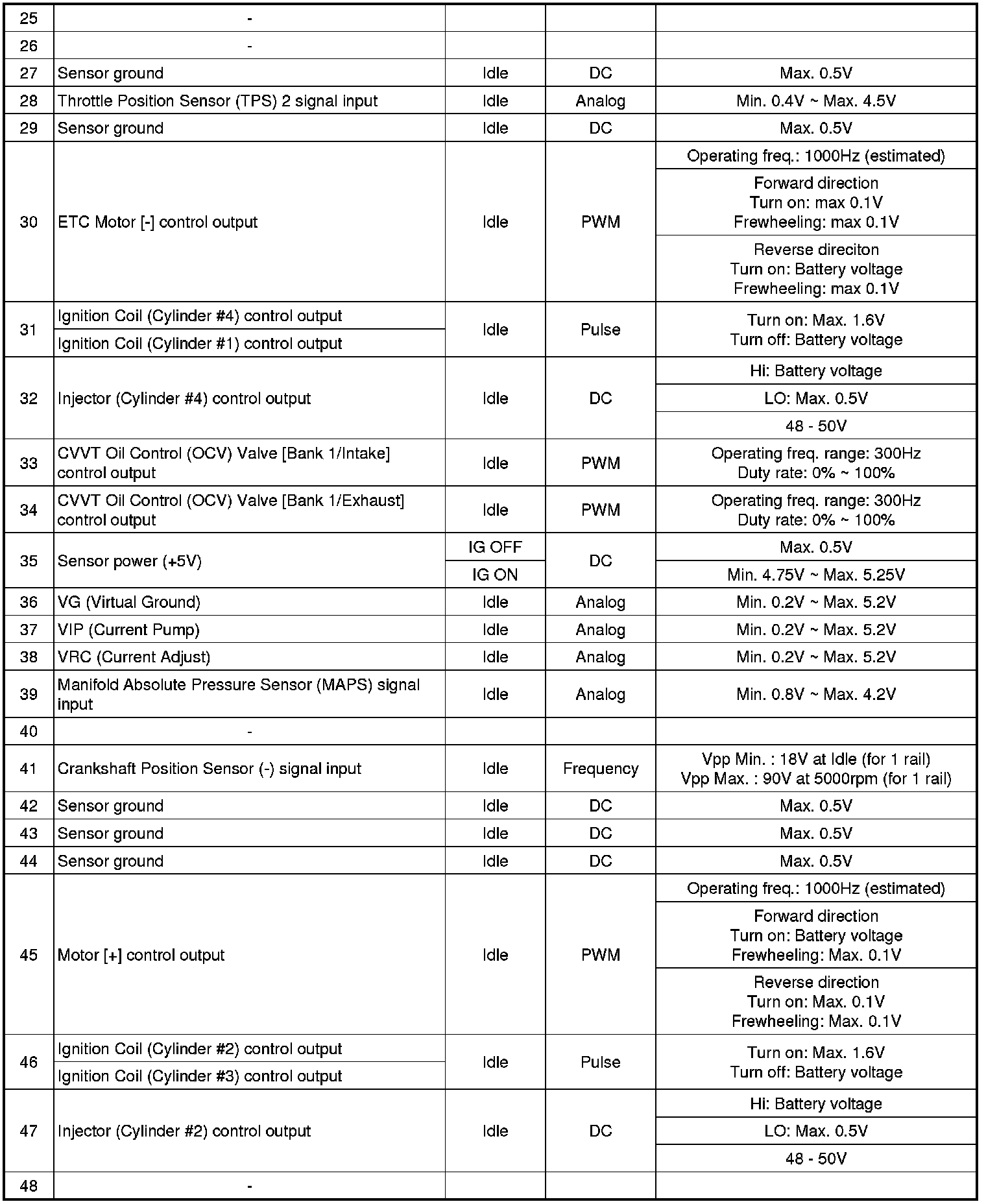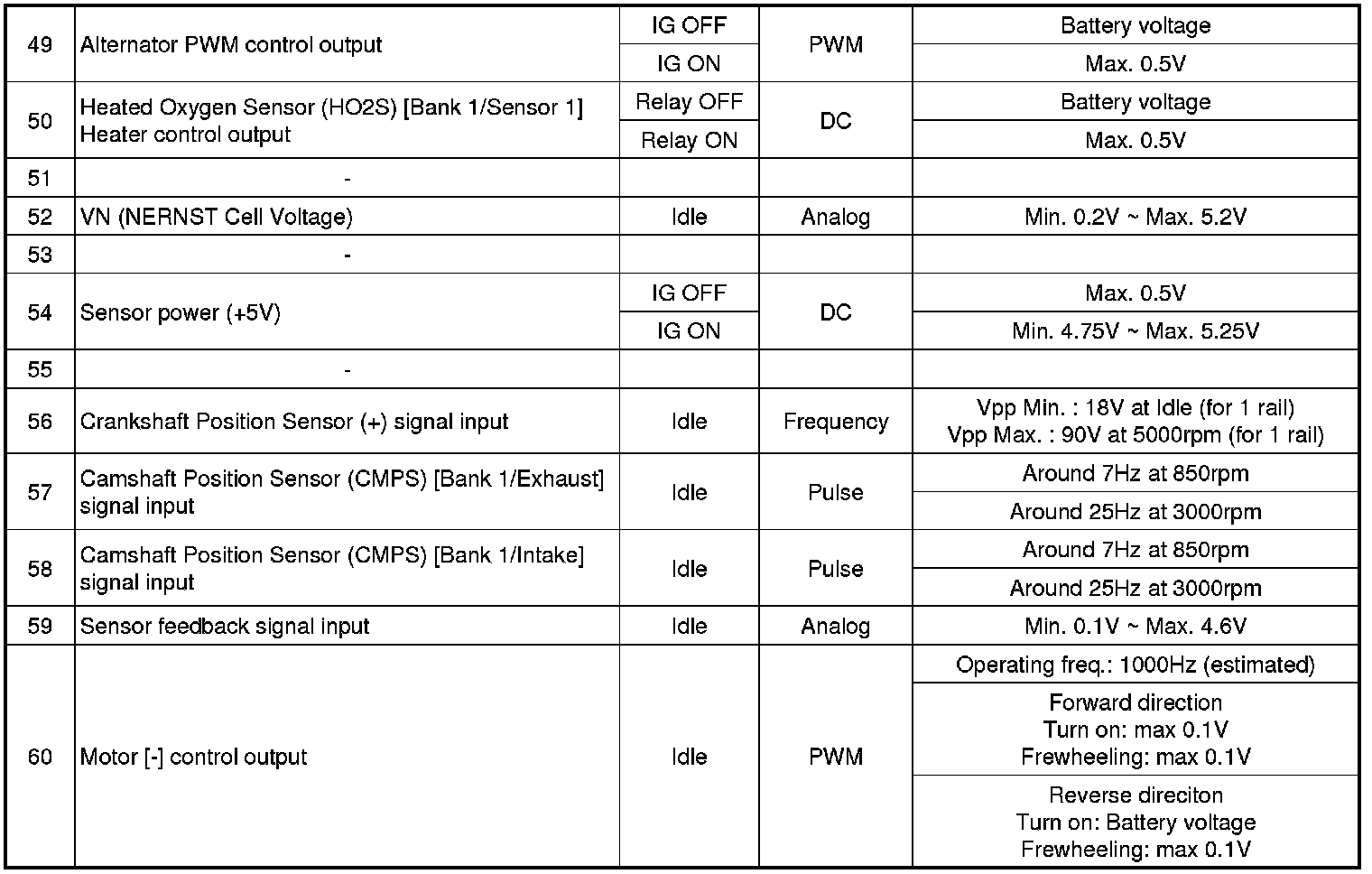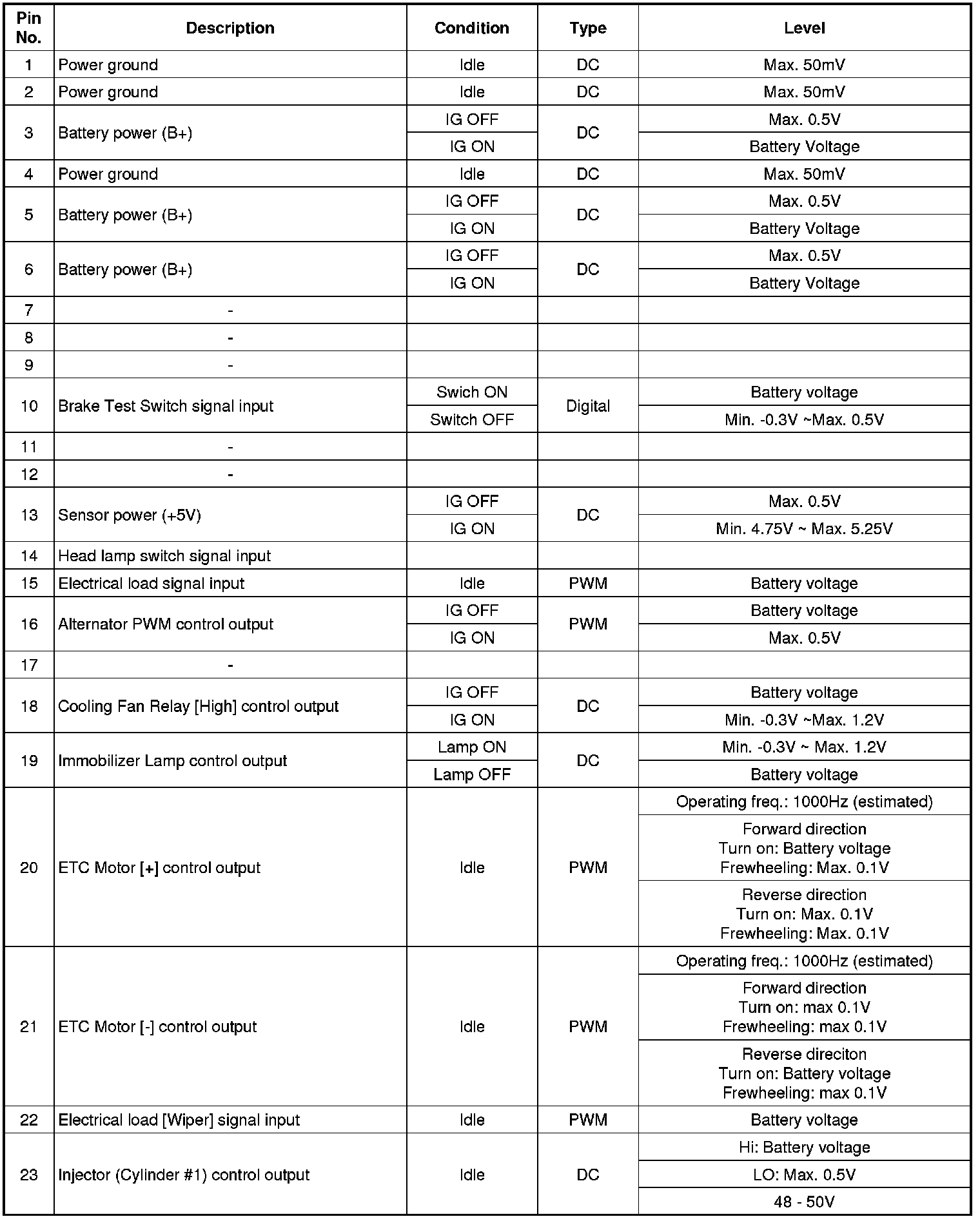 ECM Terminal Input/ Output signal