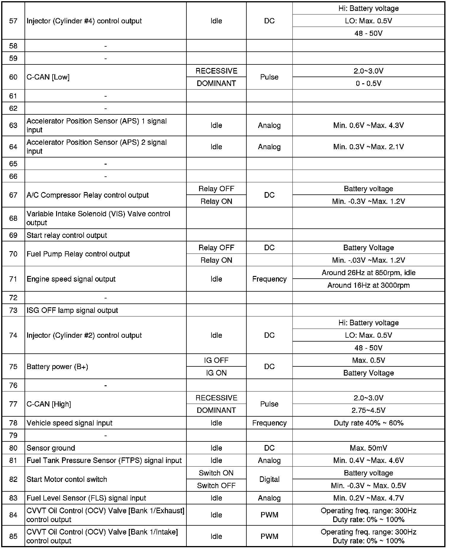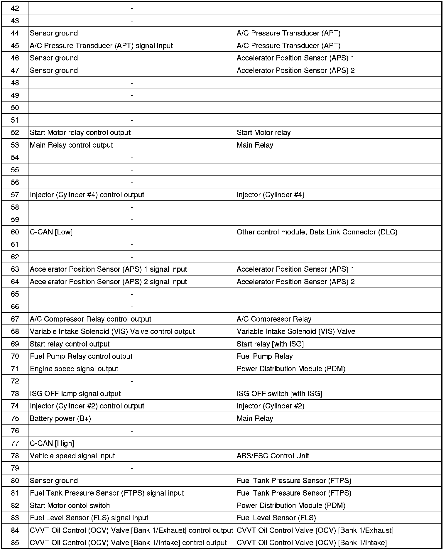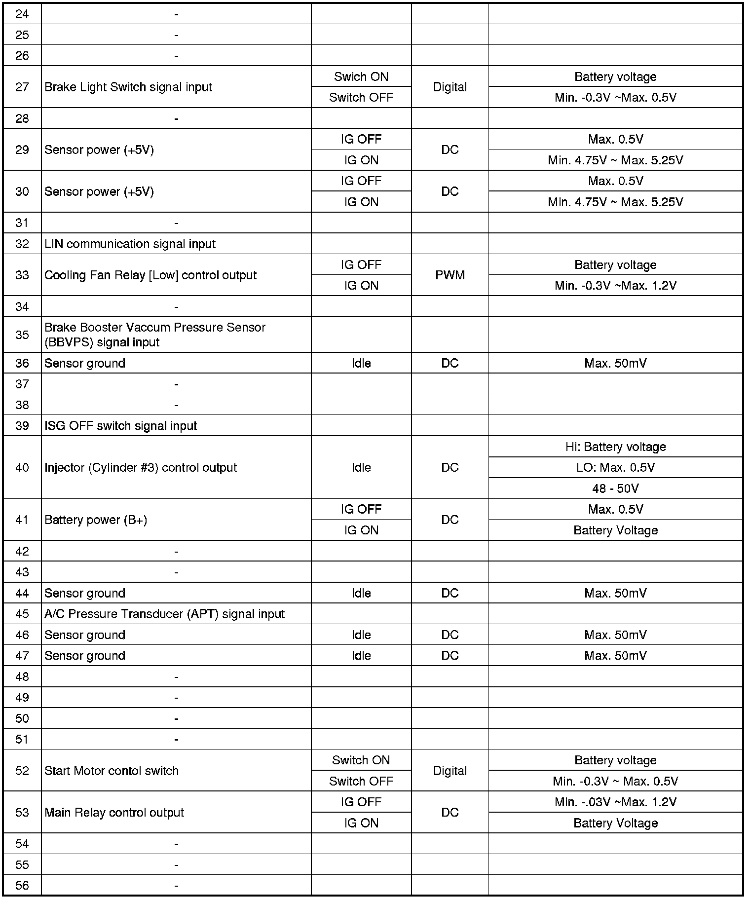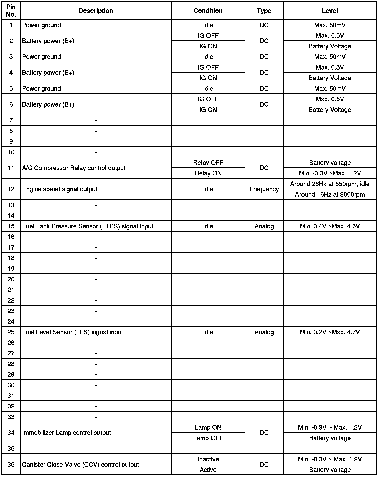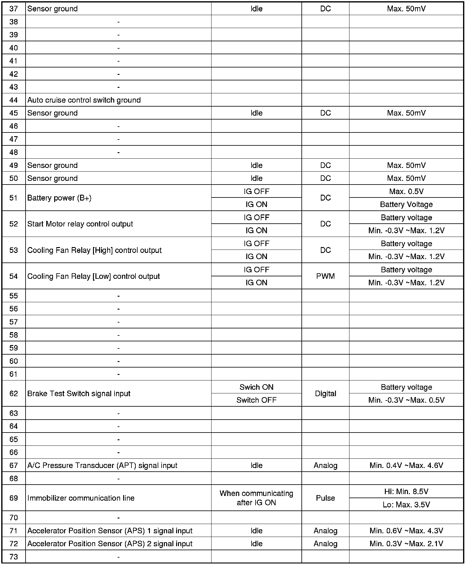 ECM Terminal Input/Output signal (AT)