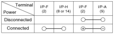 5. There should be continuity between the No.2 in the I/P-F and No.8 or 14 terminal in the I/P-H when power and ground are connected to the No.2 terminal in the I/P-F and No.9 terminal in the I/P-A.
