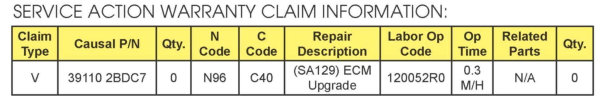 SERVICE ACTION: ECM UPGRADE - RIO ISG LOGIC IMPROVEMENT (SA129)