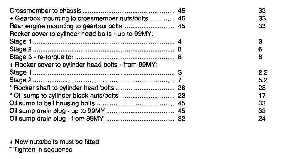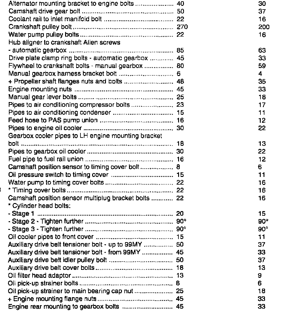 Main bearing cap bolts numbers 9 and 10 to 92 Nm