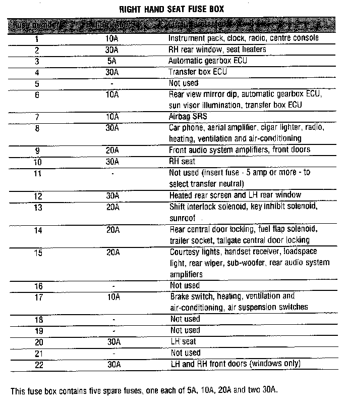 Right Hand Seat Fuse Box - Under right heat front seat