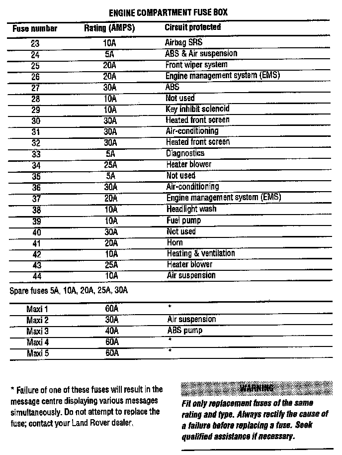 Engine Compartment Fuse Box - Right hand side of engine compartment