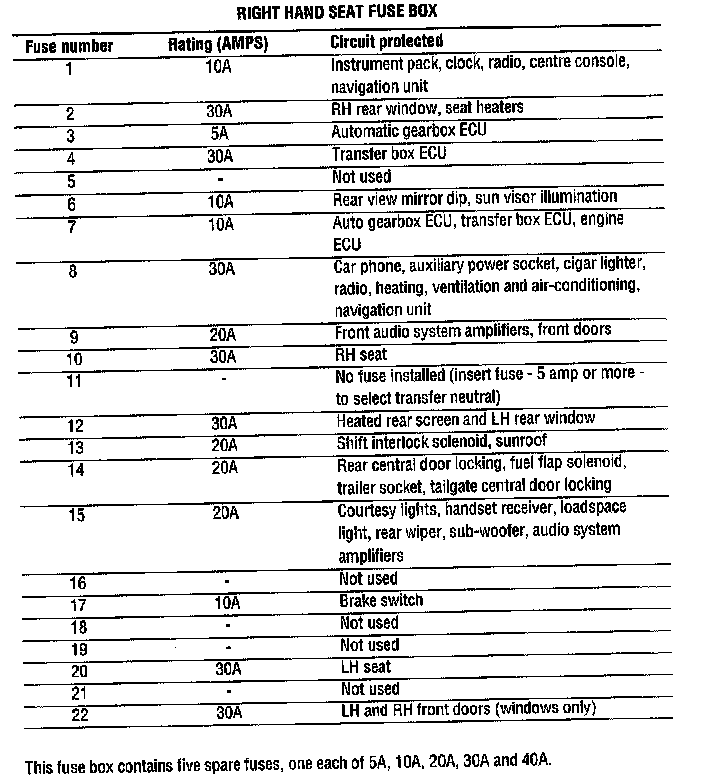 Right Hand Seat Fuse Box - Under right heat front seat