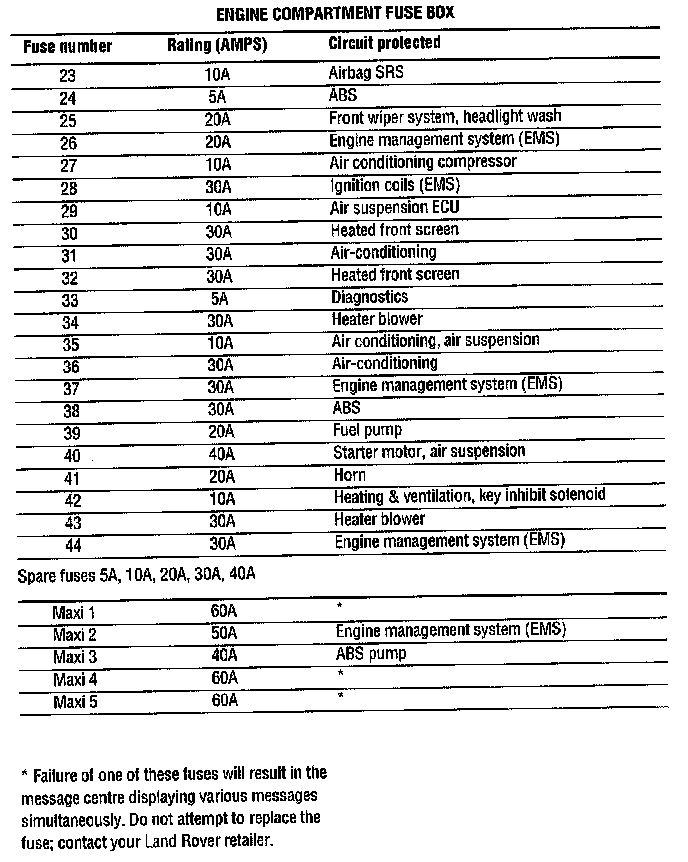 Engine Compartment Fuse Box - Right hand side of engine compartment