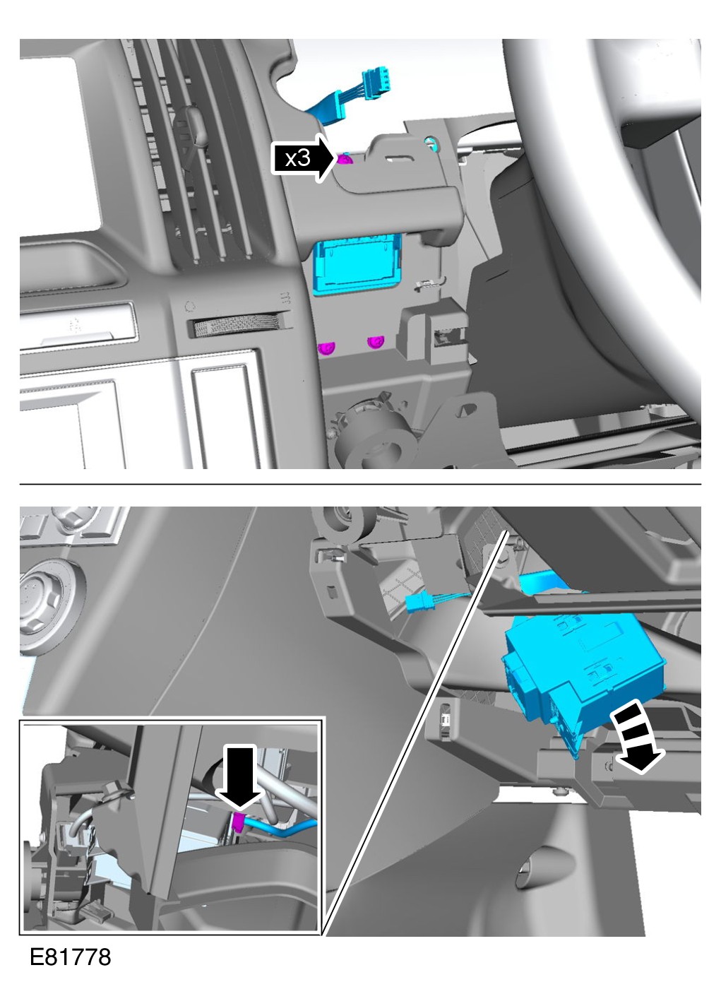 2 Using the Land Rover approved diagnostic equipment, download the previously stored information to a new start control unit.