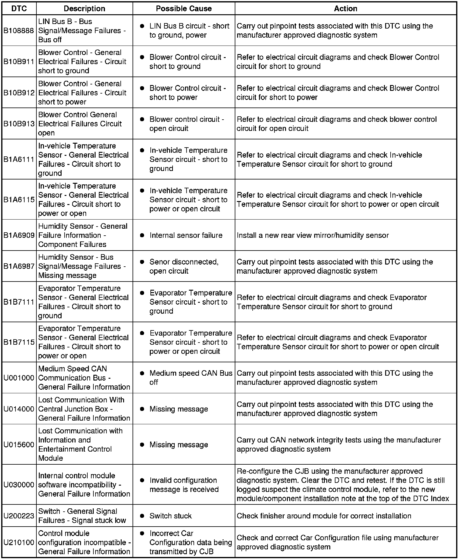 Diagnostic Trouble Code (DTC) Index