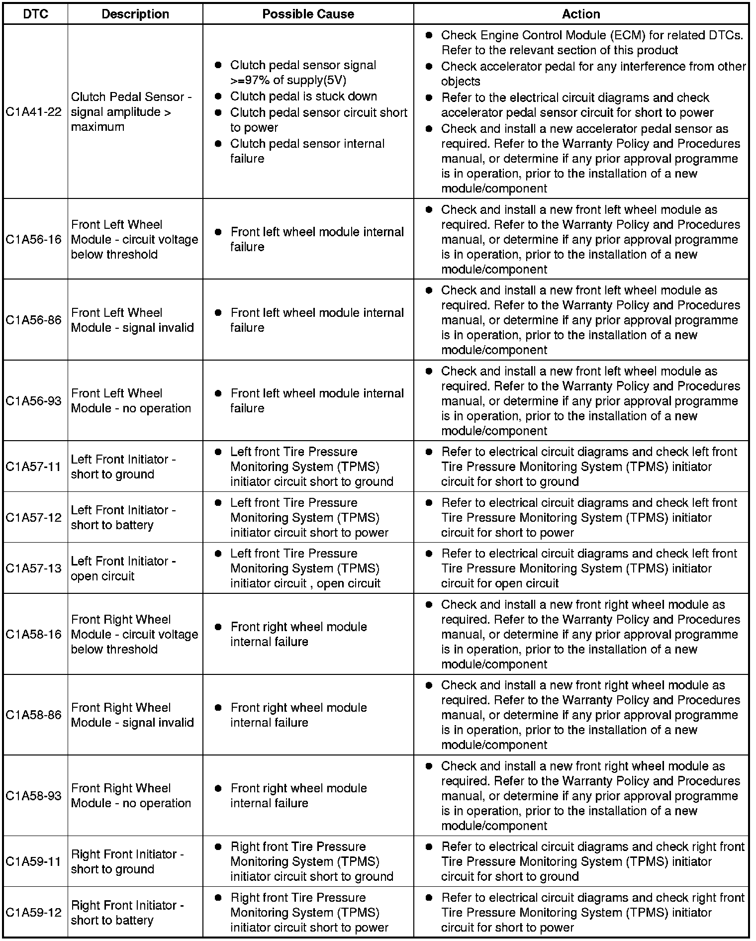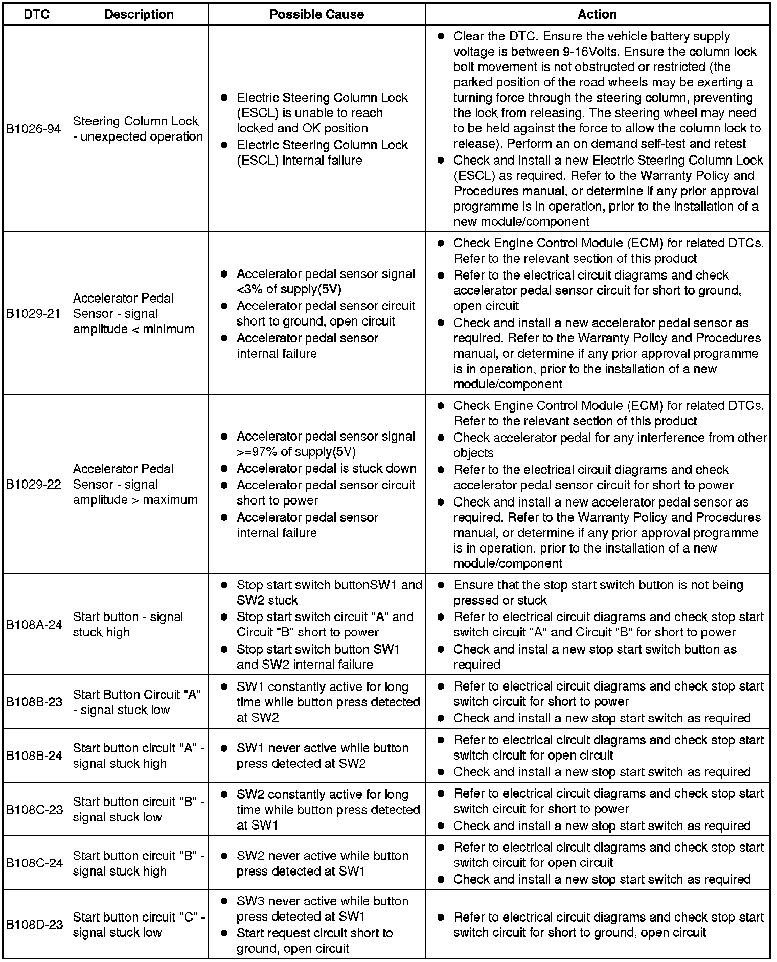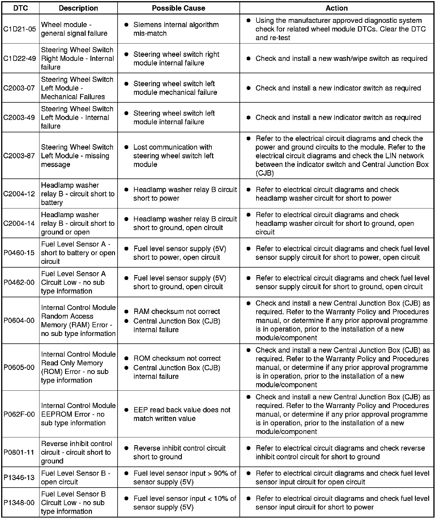 Generic scan tools may not read the codes listed, or may read only 5-digit codes. Match the 5 digits from the scan tool to the first 5 digits of the 7-digit code listed to identify the fault (the last 2 digits give extra information read by the manufacturer-approved diagnostic system).