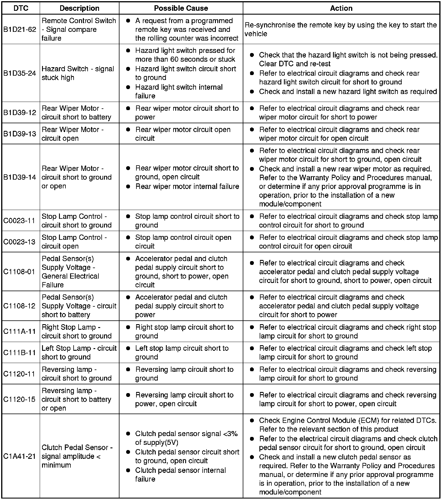 For a detailed description of the body control system, refer to the relevant Description and Operation section in this product. For additional information, refer to Communications Network Testing and Inspection
