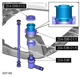 - Special tool 204-598-01/8 is used to start the bushing removal process, and must be removed after the bushing has released, as it will not pass through the sub-frame bushing aperture.