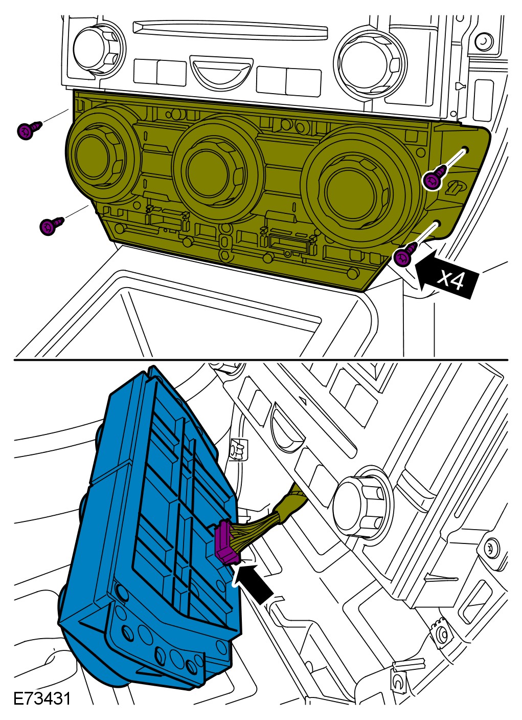 2 Remove the climate control assembly.