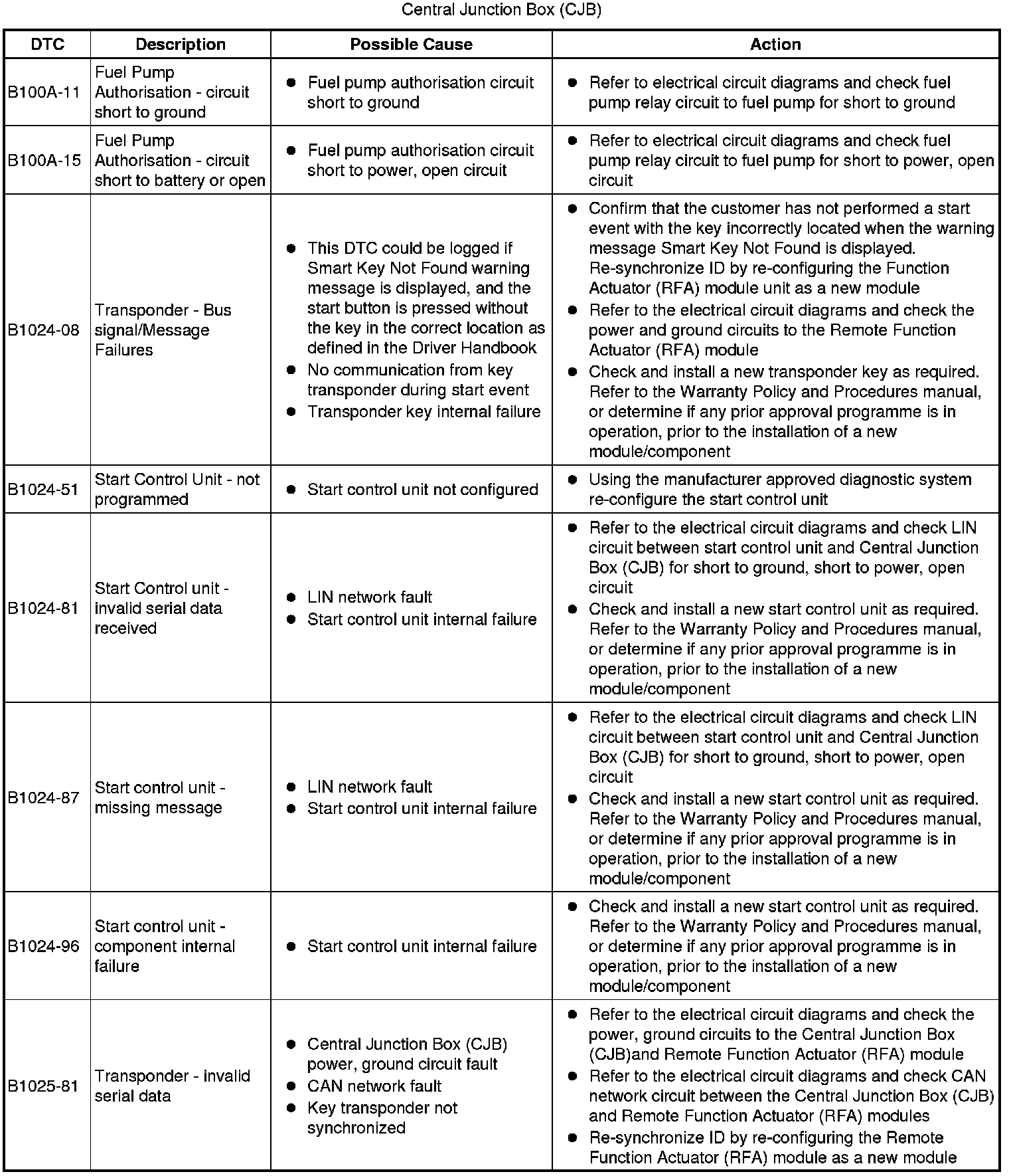 Generic scan tools may not read the codes listed, or may read only 5-digit codes. Match the 5 digits from the scan tool to the first 5 digits of the 7-digit code listed to identify the fault (the last 2 digits give extra information read by the manufacturer-approved diagnostic system).