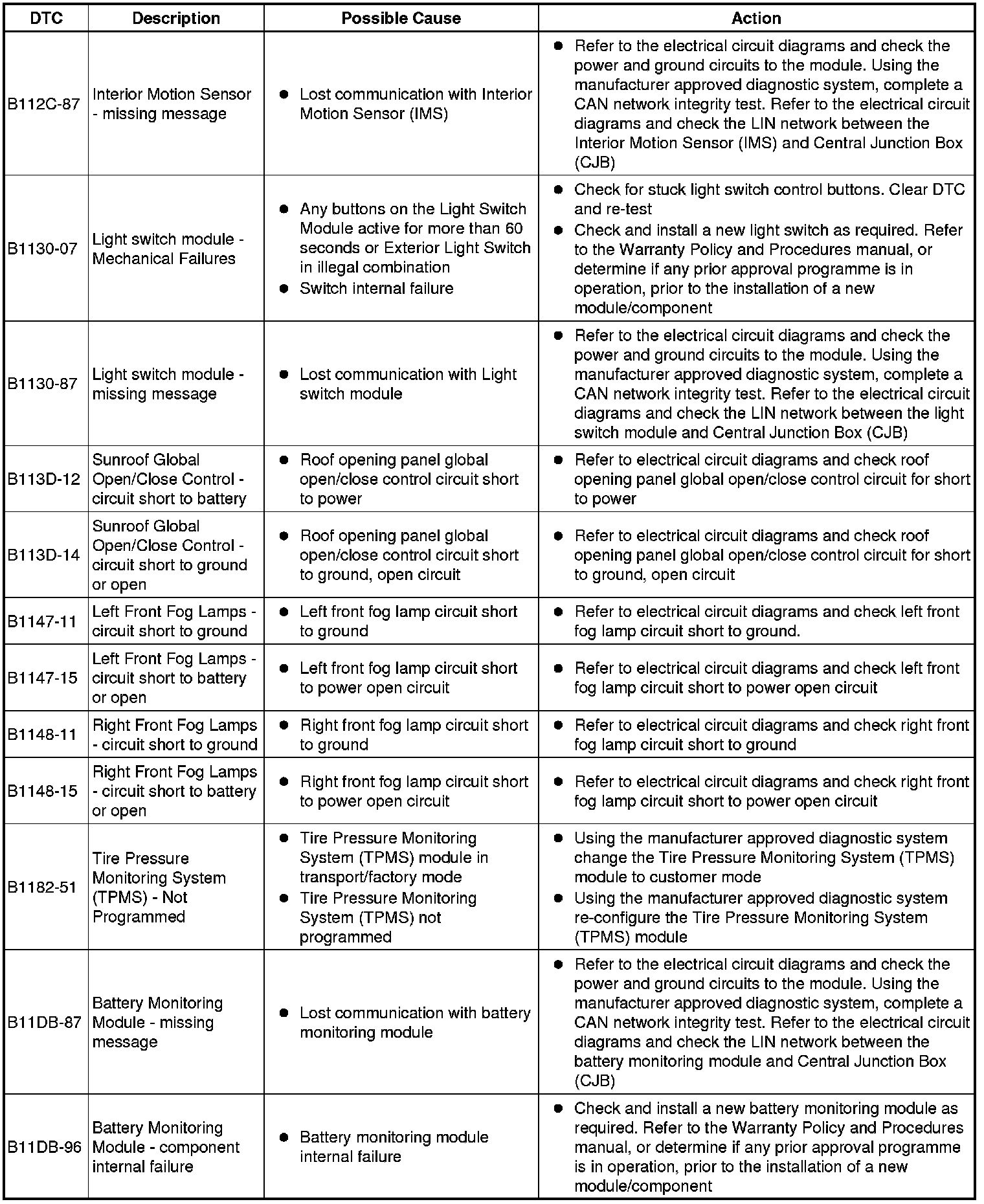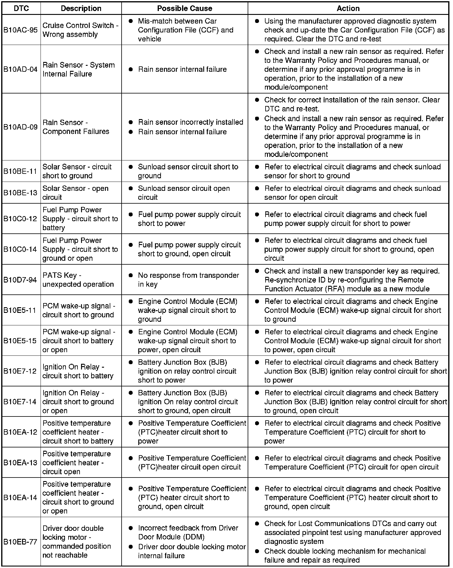 For a detailed description of the body control system, refer to the relevant Description and Operation section in this product. For additional information, refer to Communications Network Testing and Inspection